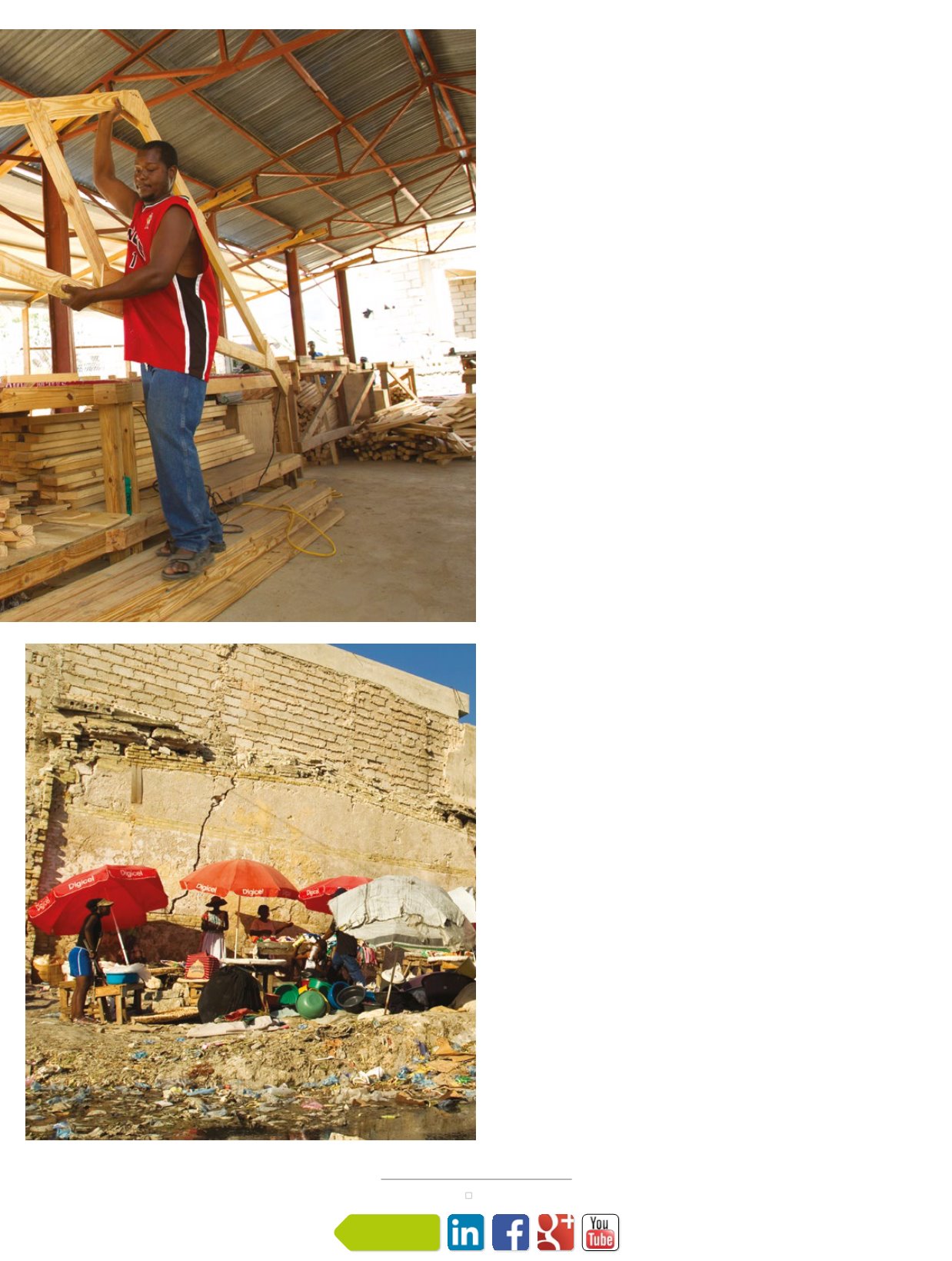 Port au Prince, mercato all’aperto. Foto in alto: Costruzione di un rifugio temporaneo.